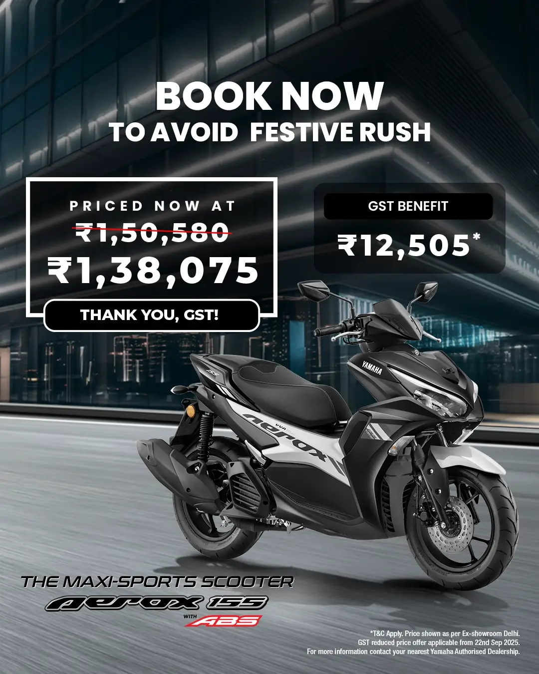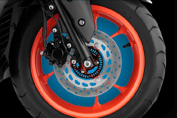Enjoy great performance with superior control. Aerox 155 comes with a 230 mm disc brake with Anti-lock Braking System (ABS).