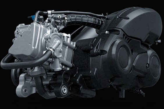 The liquid-cooled, 4-stroke SOHC, 155 cc, 4-valve, fuel-injected engine with VVA in the Aerox 155 gives out a maximum horse power of 11.0kW(15.0PS)/8000r/min and a maximum torque of 13.9N.m (1.4kgf.m) /6500r/min. The bore x stroke delivers excellent power and torque characteristics. The cylinder head along with a compact combustion chamber achieves a higher compression ratio that boosts combustion efficiency. It also optimizes the coolant pathway to improve reliability.