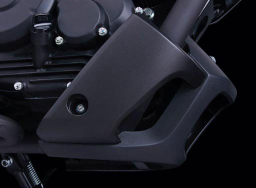 The lower engine fairing has been introduced to reduce mud and dirt splatter, enhancing the sporty look of the bike.