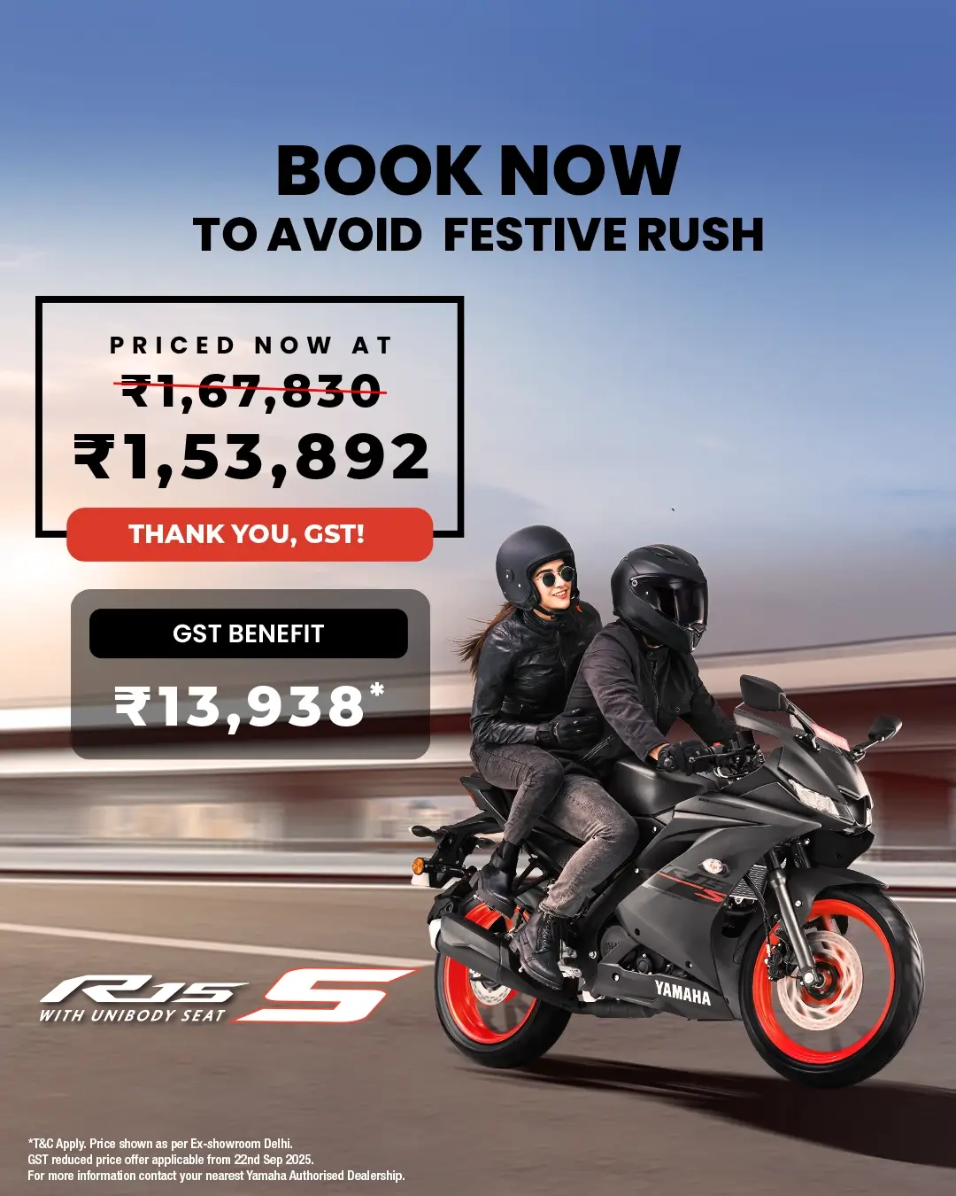 Now shift gears without worrying about economy. The new R15S with 6-speed transmission allows to cruise at low RPM even in higher gears, thus saving fuel without missing on the thrill.