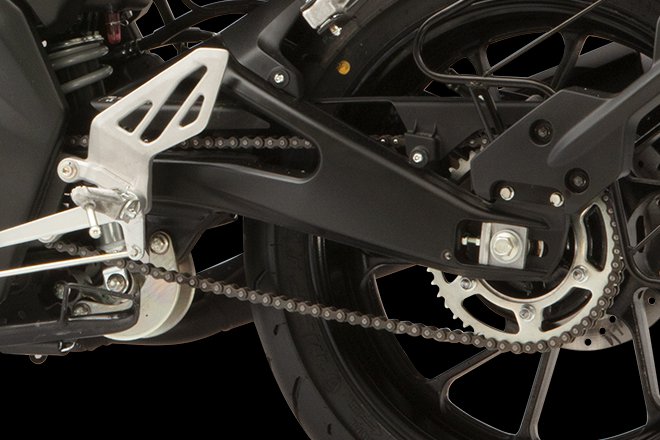 140/70R17M/C 66H radial tyre has been adopted at the rear with flexible side walls for better grip while cornering and superior shock absorbing capacity to ensure a more comfortable ride.